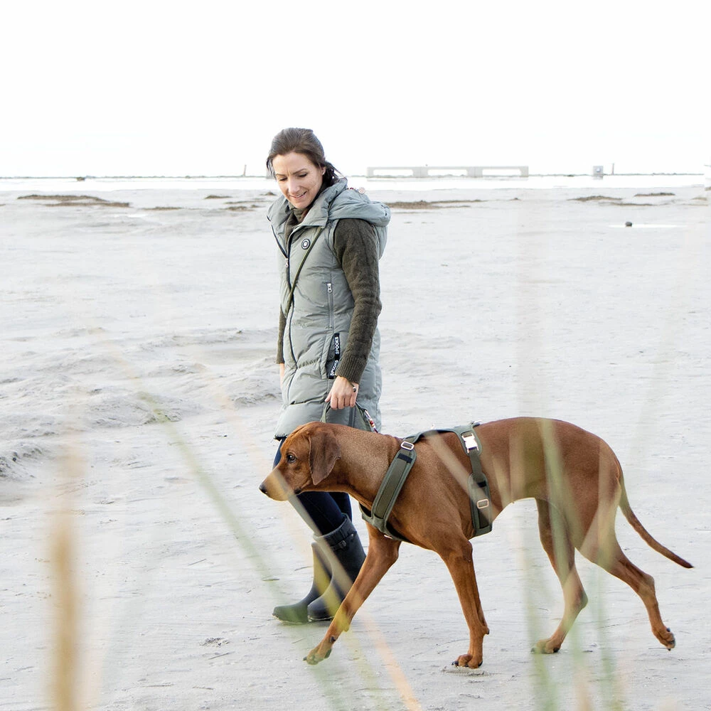 Das Geschirr kommt zudem mit weiteren Highlights, darunter drei Ringe mit unterschiedlichen Funktionen. Zwei Ringe befinden sich auf der Rückseite – einer zur Befestigung der Leine und der andere in einer kleinen Tasche, um Tracker oder Hundemarken sicher zu verstauen, ohne lästiges Klimpern. Für Trainingszwecke gibt es einen dritten Ring, versteckt in einer kleinen Tasche vorne auf der Brust (ab Größe S erhältlich).