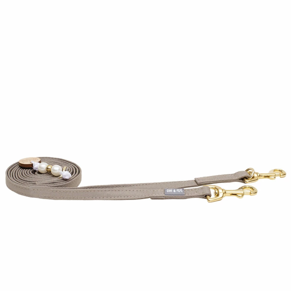 Die Kombination aus goldfarbenen Metallelementen und beigem Stoff verleiht dieser Leine einen stilvollen Look, den Ihr Hund sicherlich lieben wird. Gönnen Sie Ihrem treuen Begleiter etwas ganz Besonderes – Qualität, Handarbeit und einzigartiges Design vereint in einer Hundeleine.