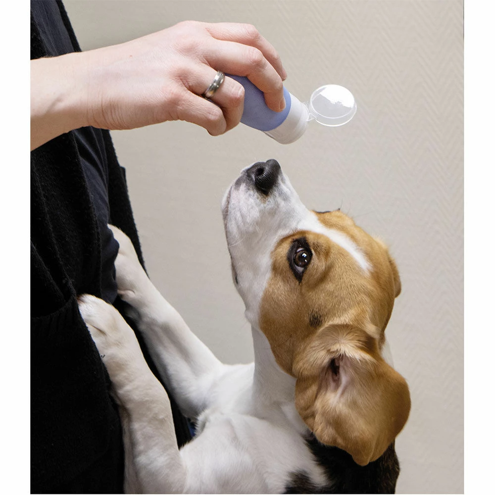 Die GoTube hat einen praktischen Klappdeckel und eine kleine Dosieröffnung mit nur 3 mm Durchmesser. So lässt sich der leckere Schleck-Inhalt sauber und genau dosieren. Füllen Sie die GoTube mit Joghurt, Quark, Frischkäse, Leberwurstcreme oder einer speziellen Mixtur für Ihren kleinen Vierbeiner. In der GoTube ist alles sicher aufbewahrt und sofort einsatzbereit. Auch in stressigen und aufregenden Situationen ist die GoTube der perfekte Begleiter.