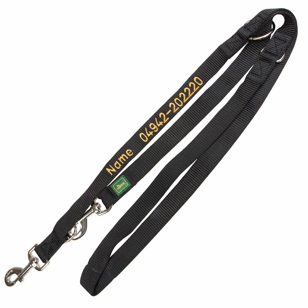 Ab jetzt kommt ohne Telefonnummer und Namen kein Hund mehr davon! Unsere spezielle Stickmaschine ermöglicht es, Leinen und Halsbänder mit der gewünschten Telefonnummer sowie dem Namen zu besticken. Und zwar nicht irgendwelche Leinen und Halsbänder, sondern eine Kollektion, die wir extra ausgesucht haben. Strapazierfähiges Nylon in 3 Farben – mit dem Namen Ihres Lieblings bestickt!