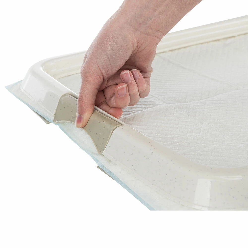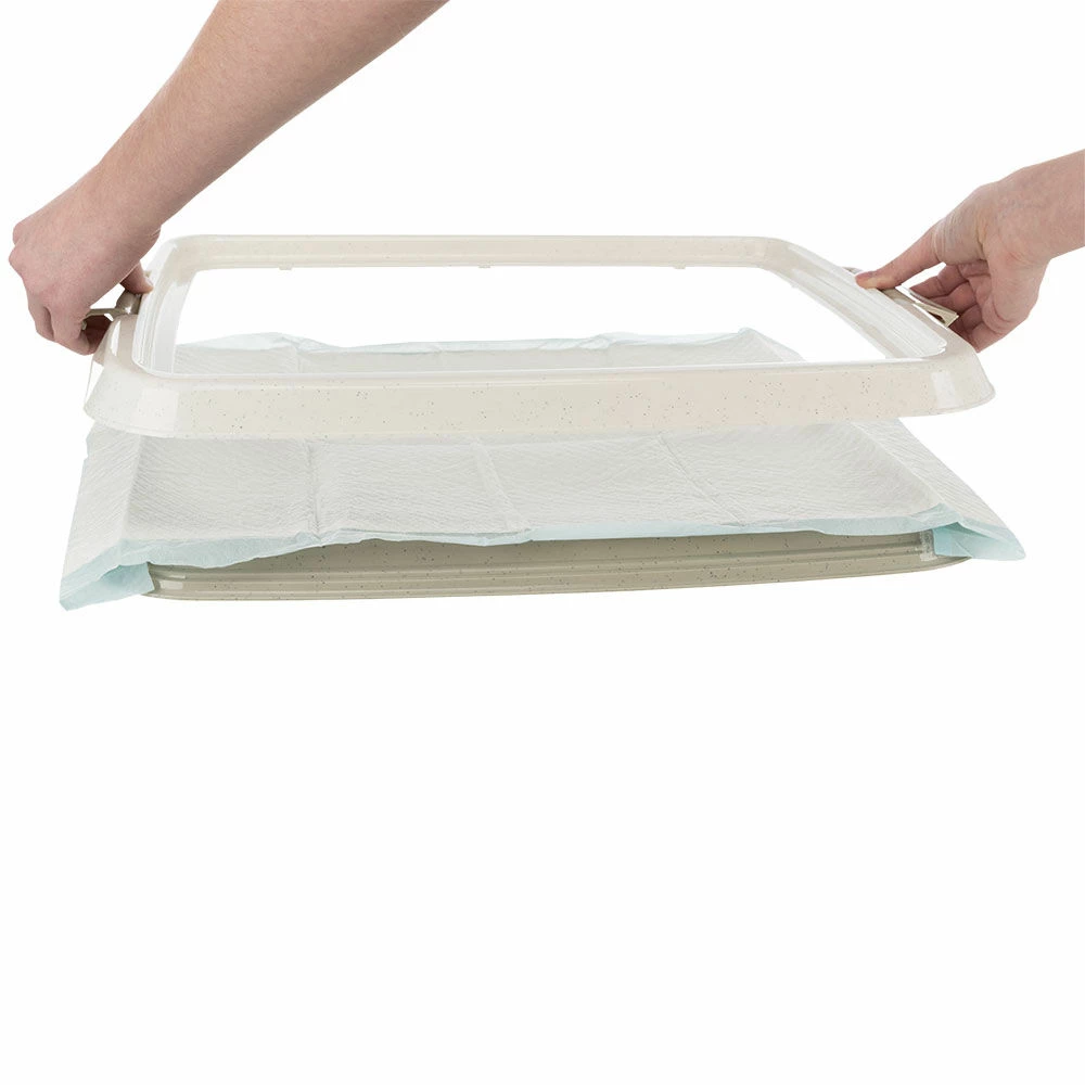 Ein besonders praktisches Hilfsmittel, gerade wenn man nicht nach jedem Pfützchen die Stubenrein-Unterlagen erneuern möchte oder kann. Der Klapprahmen klemmt die Stubenrein-Unterlagen sicher ein, verrutschen ist nicht mehr möglich. Die durchgängige Kunststoffschale mit ihrem leicht erhöhten Rand sorgt dafür, dass auch größere Pfützen und Geschäfte nicht auf den Fußboden gelangen. Ein Muss für jeden Welpenbesitzer und solche, die es werden wollen.