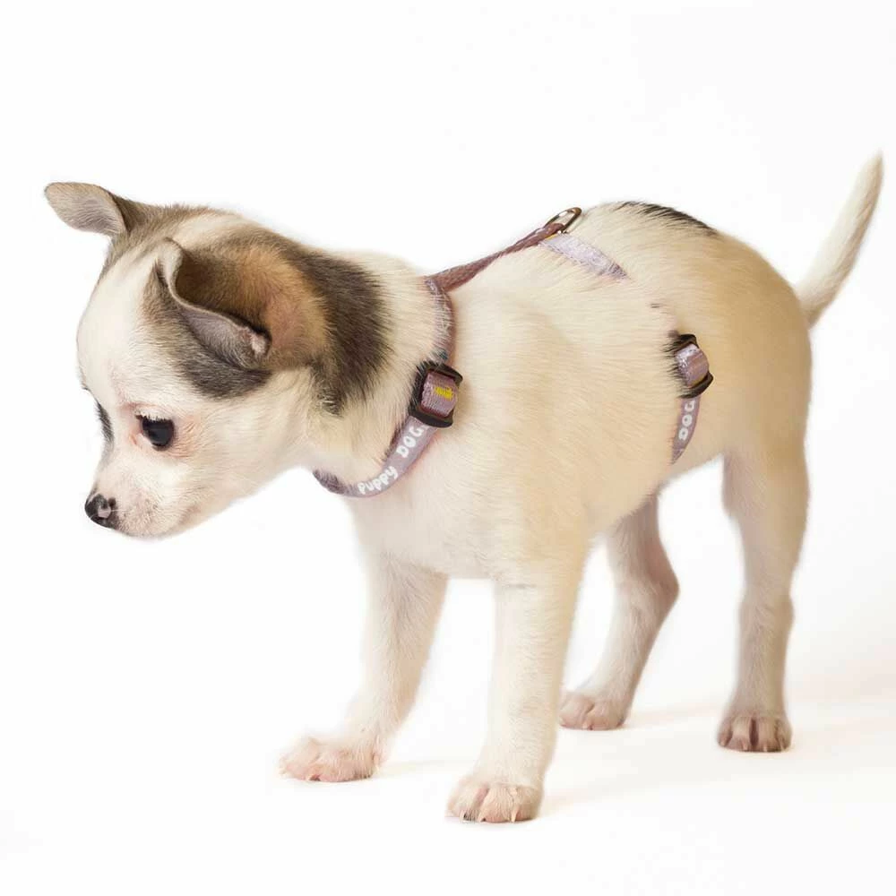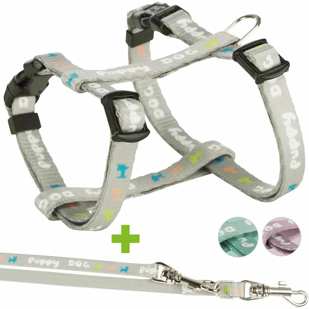 Ideal für Welpen und Kleinsthunde. Das Geschirr und die Leine sind aus robustem Nylon. Das Welpengeschirr ist stufenlos verstellbar. Durch die Schnappverschlüsse kann man es schnell und einfach anlegen. Die Leine ist 3-fach verstellbar.
