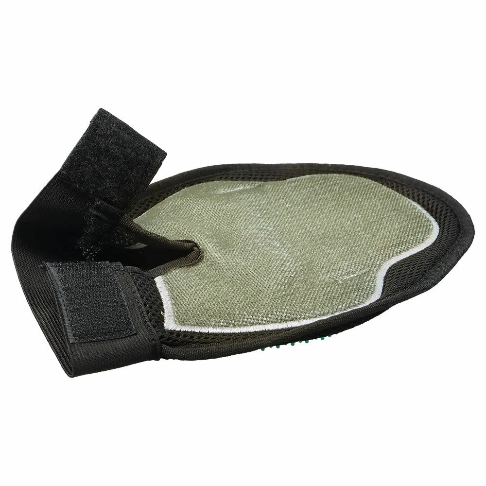 Beidseitig verwendbarer Pflegehandschuh in Universalgröße. Rechts oder links verwendbar. Ein breiter, flexibler Klettstreifen hält den Handschuh sicher fest. Verwenden Sie die grobe Noppenseite um das Fell glatt zu kämmen, lose Haare zu entfernen und auch um den Hund zu streicheln und zu massieren. Diese Art der Fellpflege wird ihr Hund lieben! Und sie festigt zudem die Hund-Mensch Beziehung. Die feine Mikrofaserseite des Handschuhs dient dazu, feine, lose Haare aus dem Fell zu entfernen und fest zu halten. Diese Seite sollten Sie vor allem am Kopf des Hundes anwenden.